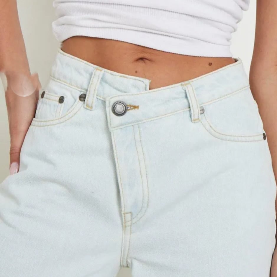 Shaper Asymmetric Distressed Wide Leg Jeans